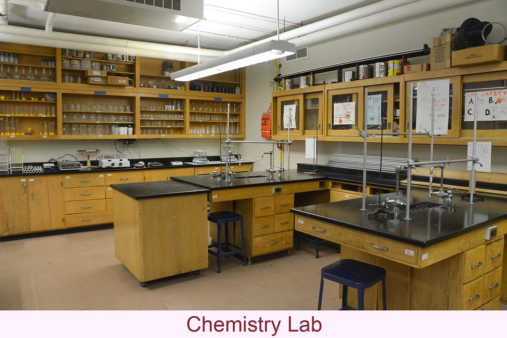 - 1 phòng thí nghiệm Khoa học, Công nghệ, Kỹ thuật với các bộ xương người minh họa, mô hình cơ thể người, mô phỏng não/thận, vâng vâng.